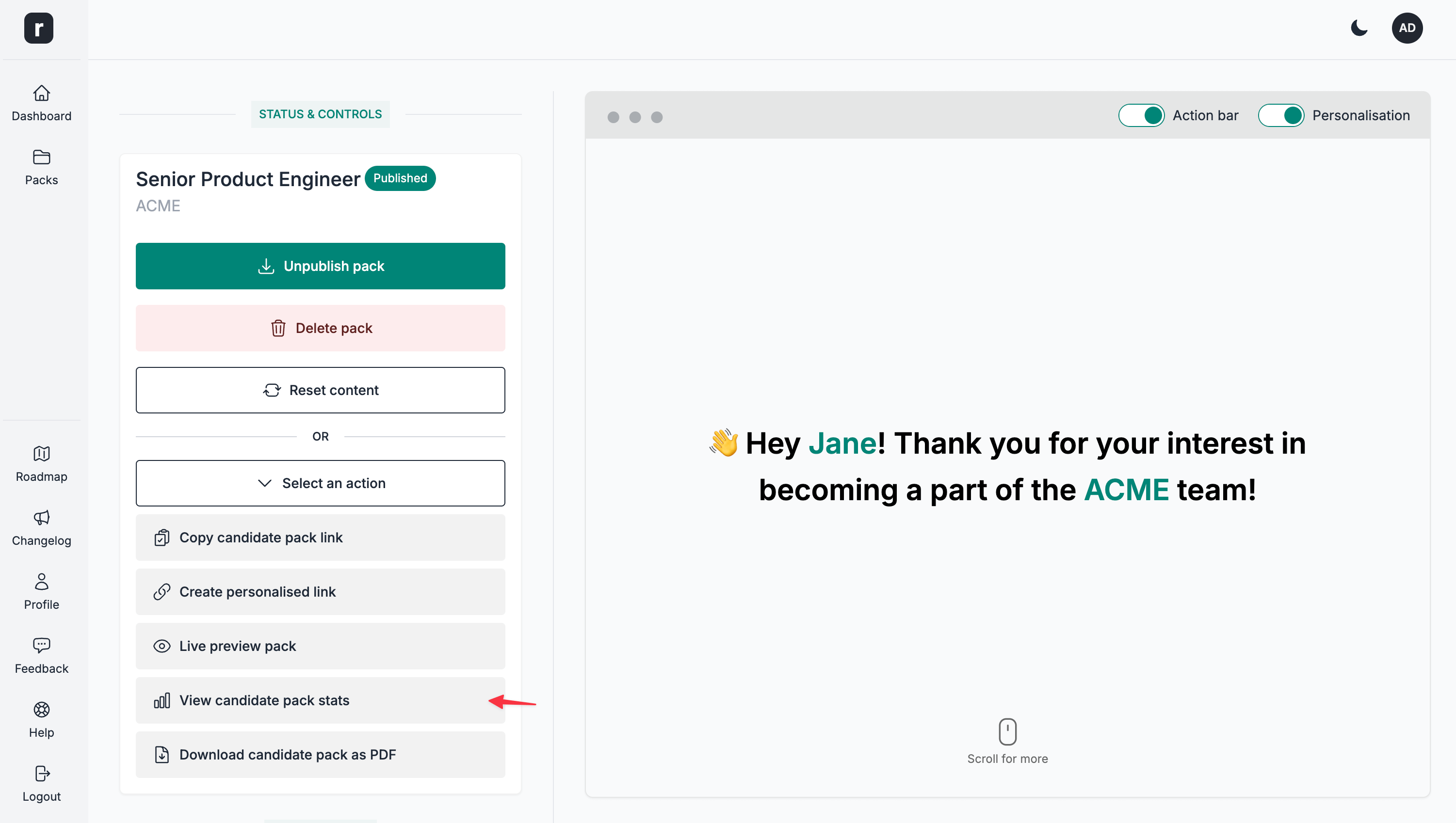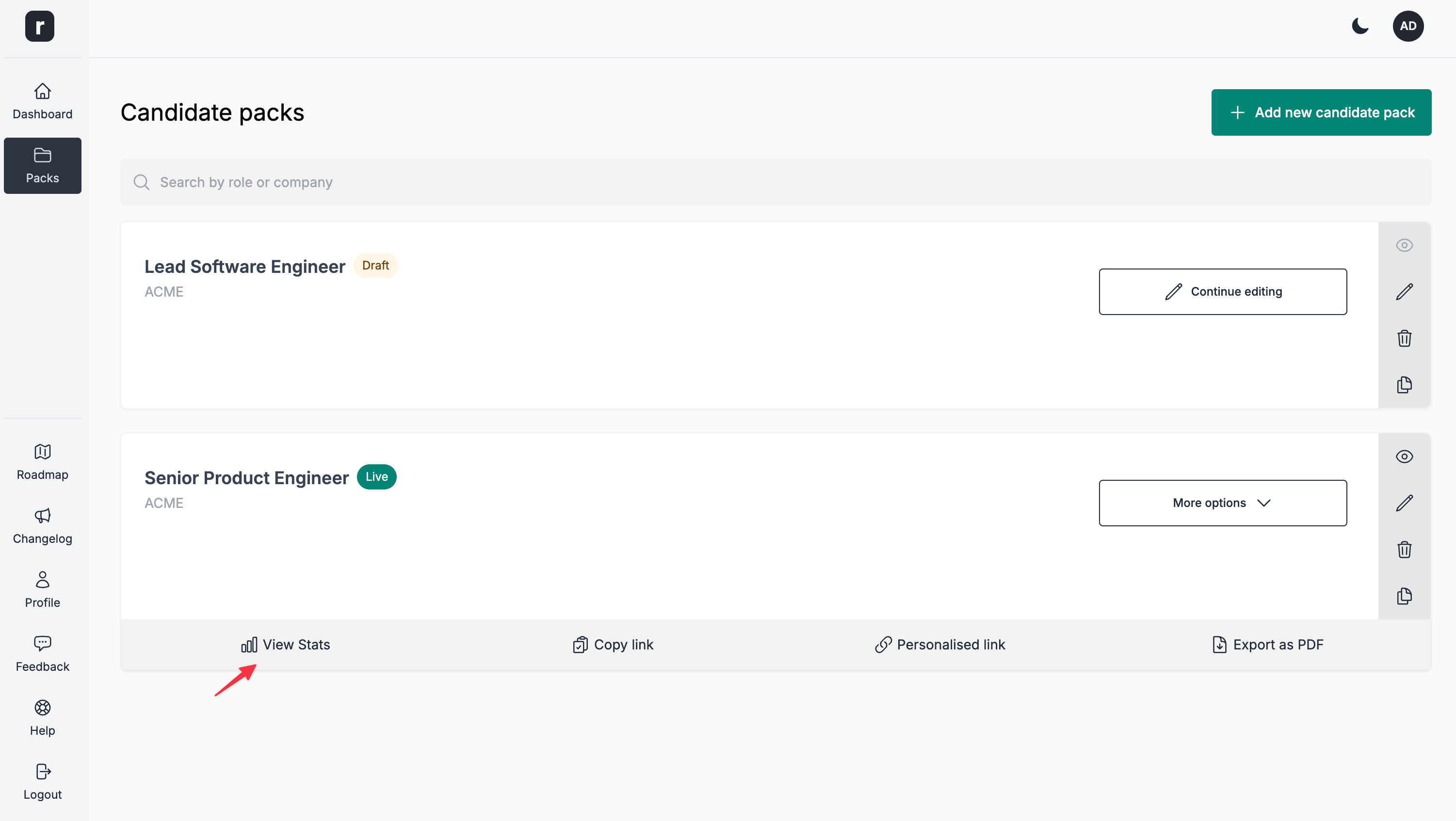 There is also an extra data point available when viewing the stats for a single candidate pack, as described below.