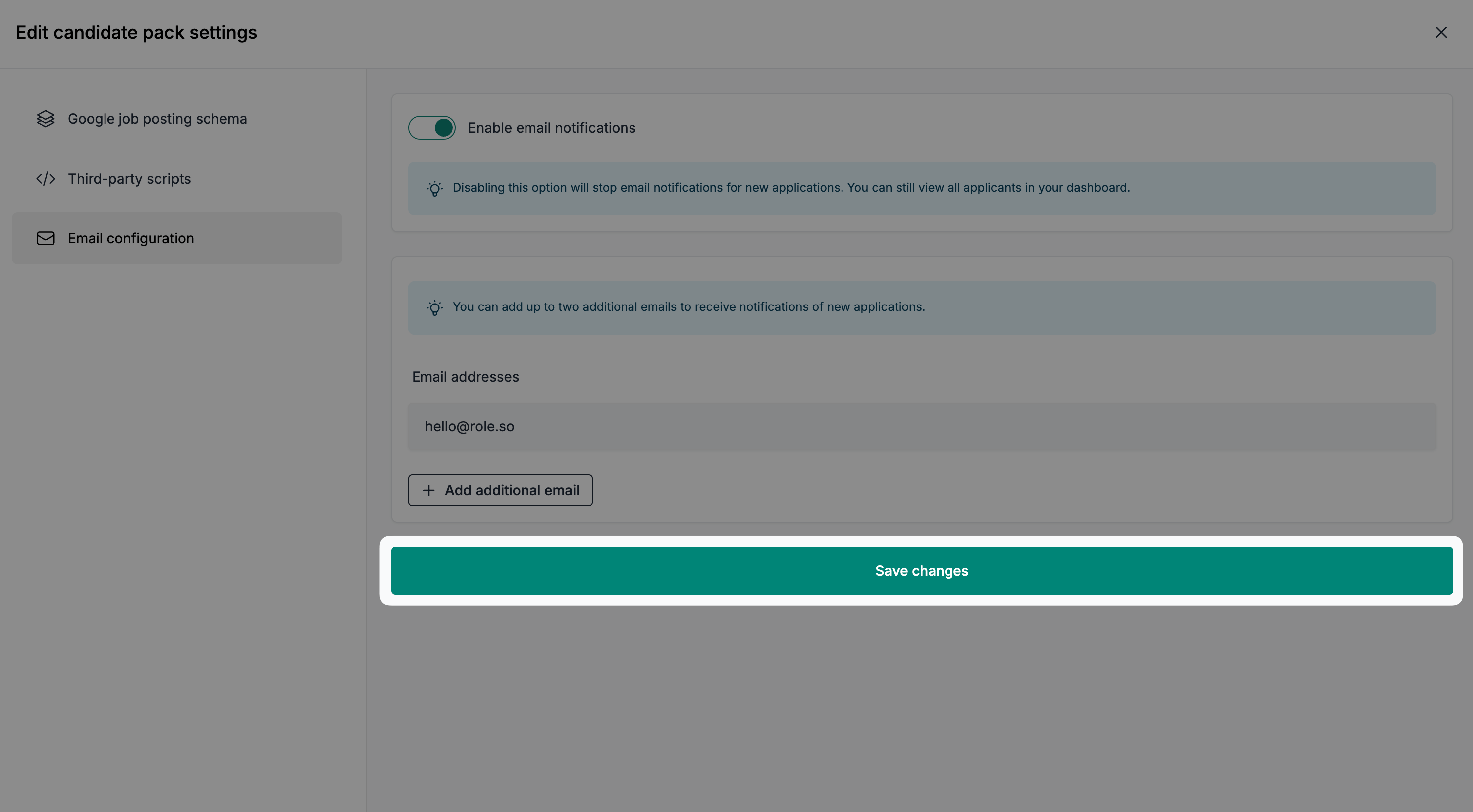 You can add up to two additional recipients to receive application notifications, alongside the main email address.