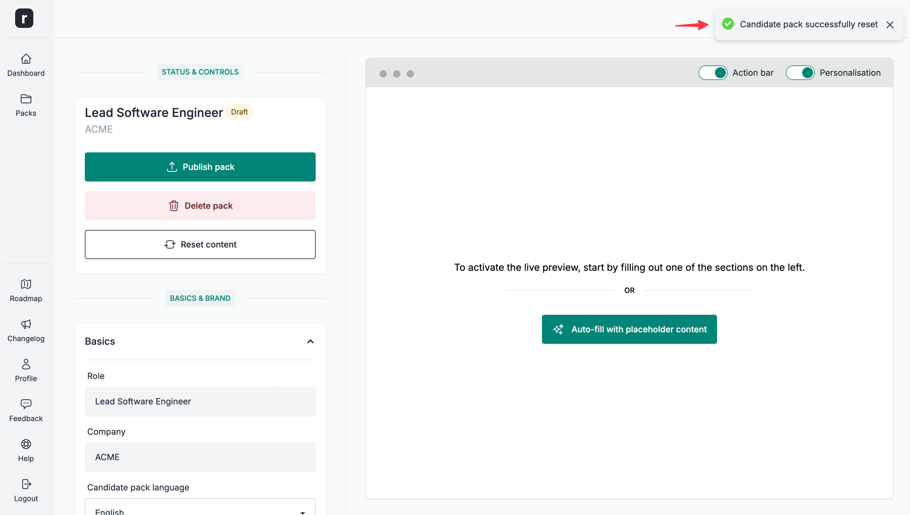 - Navigate to the candidate pack's editor page