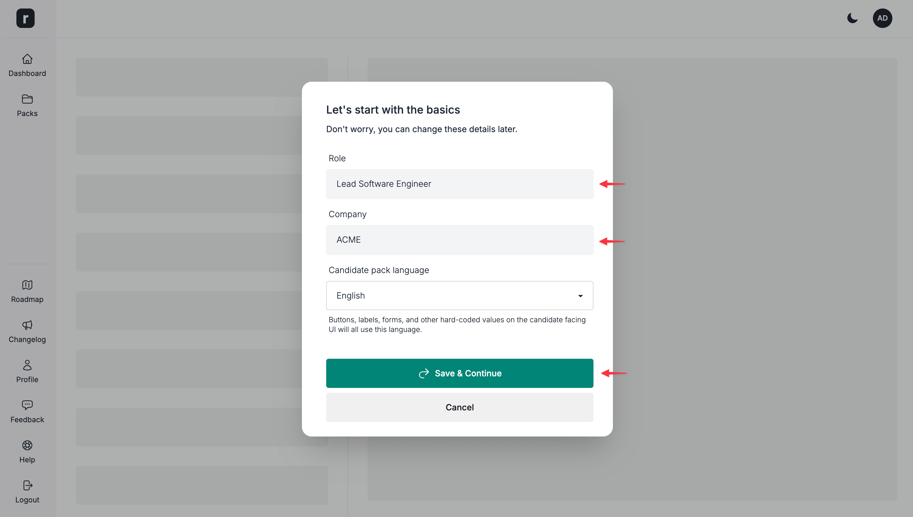 This will populate each section with helpful guidelines and tips to kickstart the candidate info pack creation process for you.